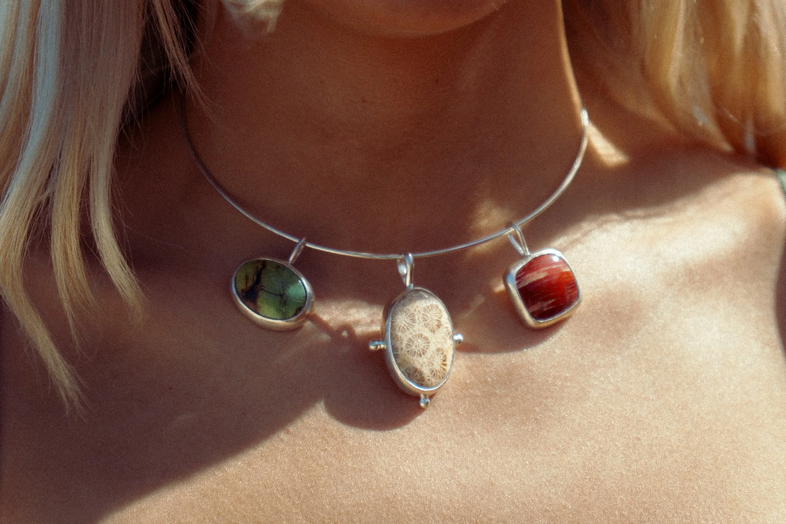 Handcrafted with ammonite, tiger’s eye, and amazonite. Each stone is carefully chosen for its natural beauty and earthy tones, creating a piece that feels grounded and unique.